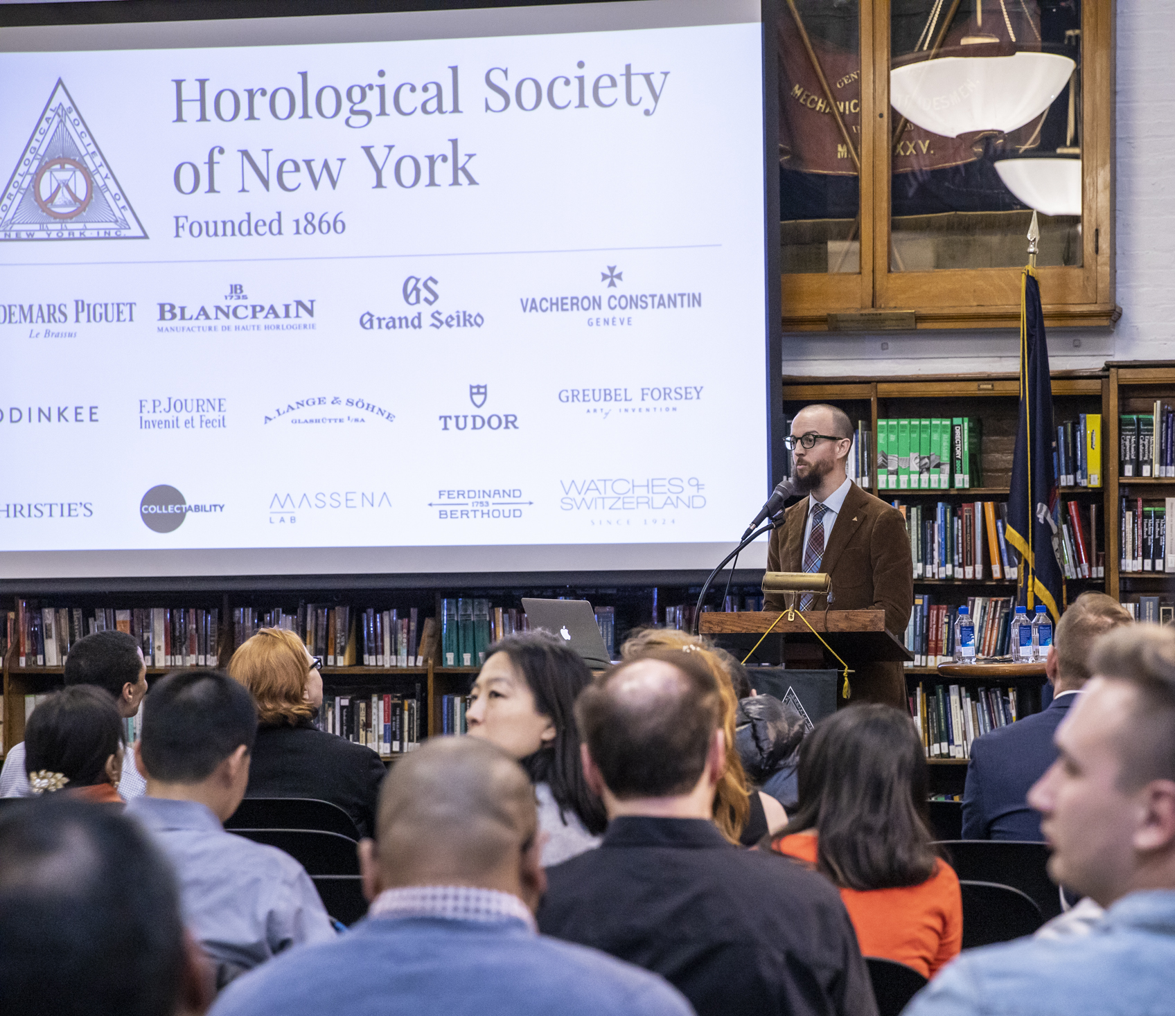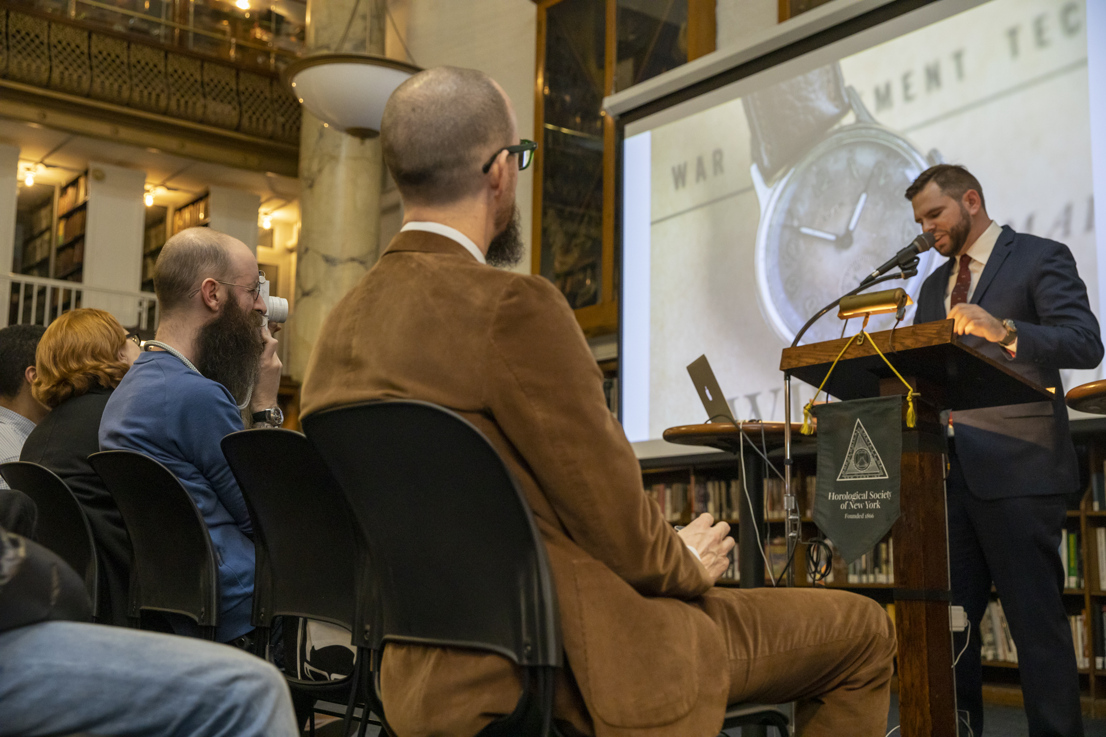 On Monday night, HODINKEE editor Cole Pennington took the podium at the monthly meeting of the Horological Society of New York – in front of a standing-room-only crowd that pushed right up against fire code, we might add – to share some very interesting stories that originated on the casebacks of watches. More specifically, Cole had found a small trove of watches from World War II and attempted to use these little wrist-borne bits of information to try to figure out just who the original owners were and what their descendants are up to today. It's one part watch nerdery, one part gumshoe journalism, and one part diehard enthusiasm.