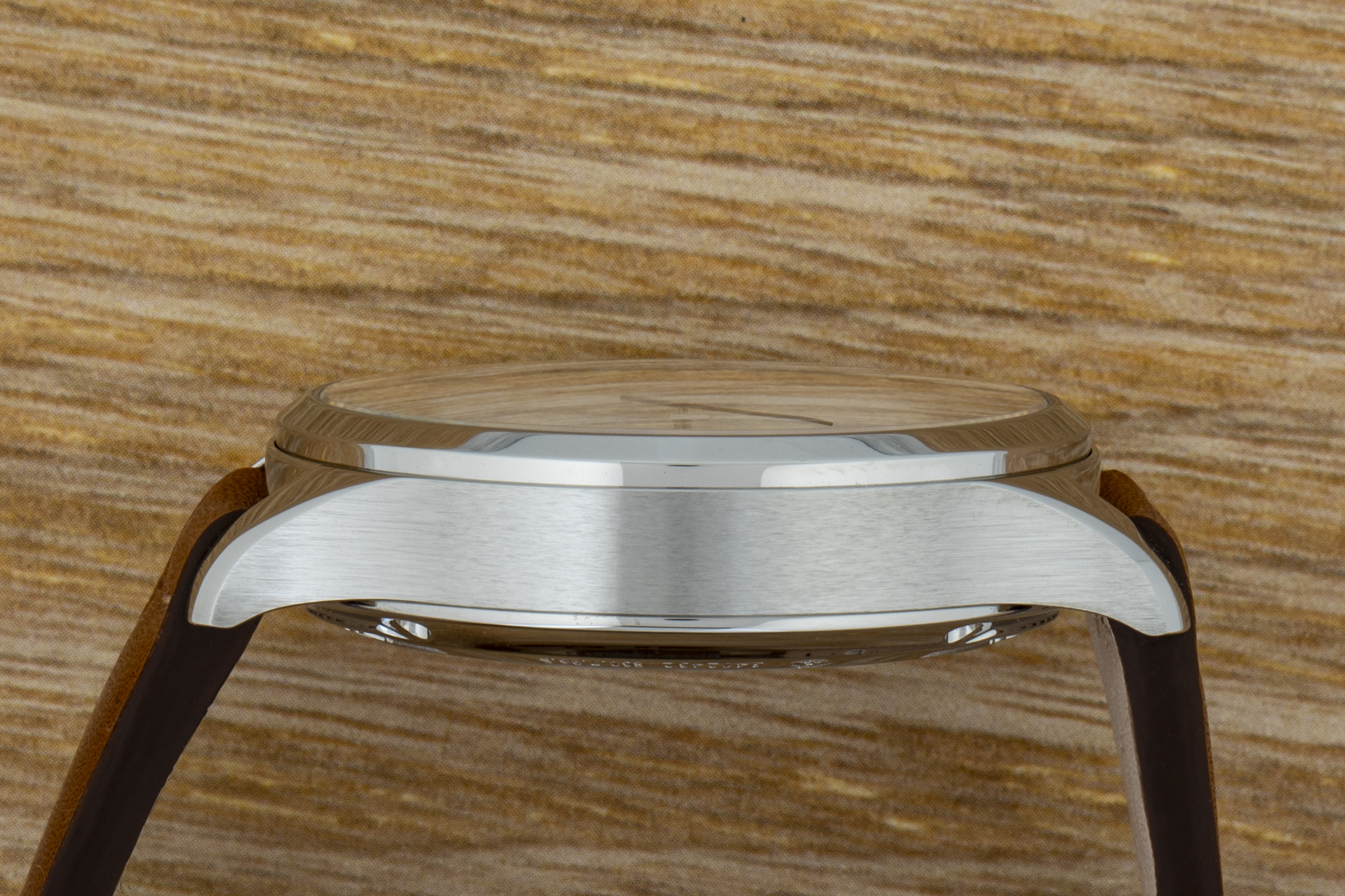Whereas previous Memovox models have come with closed casebacks with the gong affixed to the back to aid in the transmission of sound, this new model has an open caseback, which allows the wearer to view the hammer as it strikes the gong. Doing this necessitated a redesign of the striking mechanism, and now the gong is attached to the side of the case.
