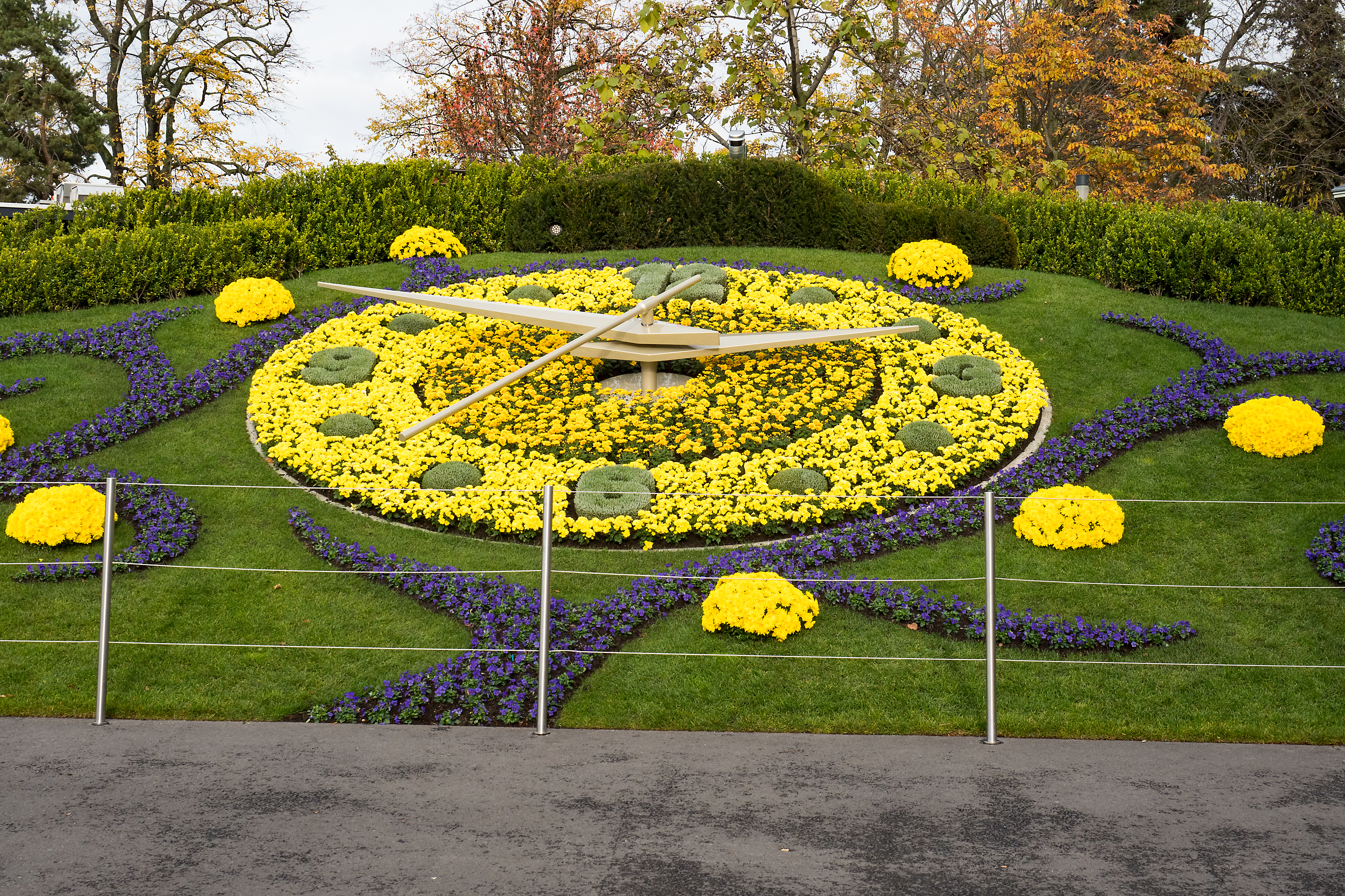 L'horloge fleurie: the Flower Clock in Geneva's English Garden.