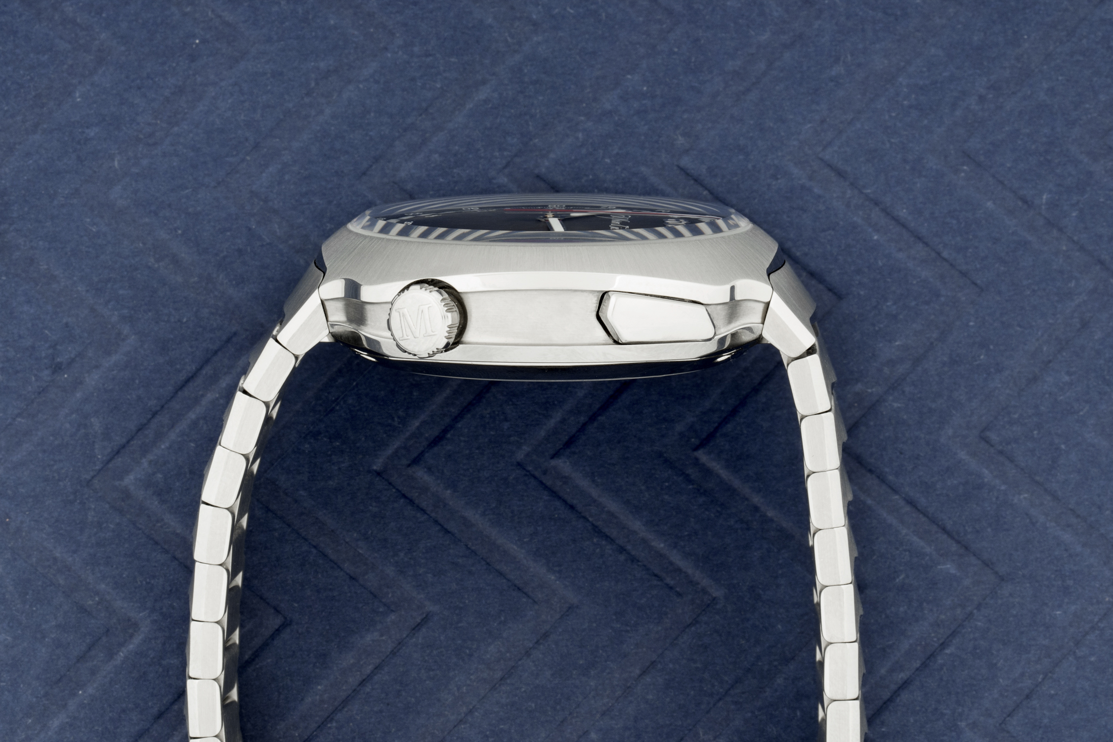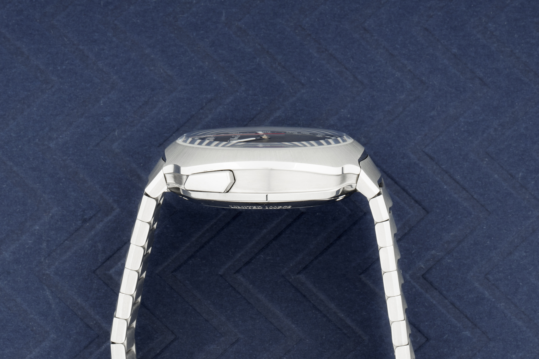 It's a funny thing about chronographs – they have the potential, I've always felt, to bring out the absolute worst in a watch design team. The temptation to bludgeon the potential owner with all sorts of signals that they're getting a laudably complicated, highly sophisticated piece of hardware seems to be nearly irresistible and many succumb to it (one of my favorite remarks, of many, from George Daniels was his observation that it's hard to keep a complicated watch from looking like a gas meter). But in chronographs, less really is more. Not only is legibility better, but almost invariably, from a pure aesthetics standpoint, you have a better looking watch. And, you have a better ability, if you hew to simplicity as a guiding principle, to create real visual integration between bracelet and case in an integrated bracelet watch.