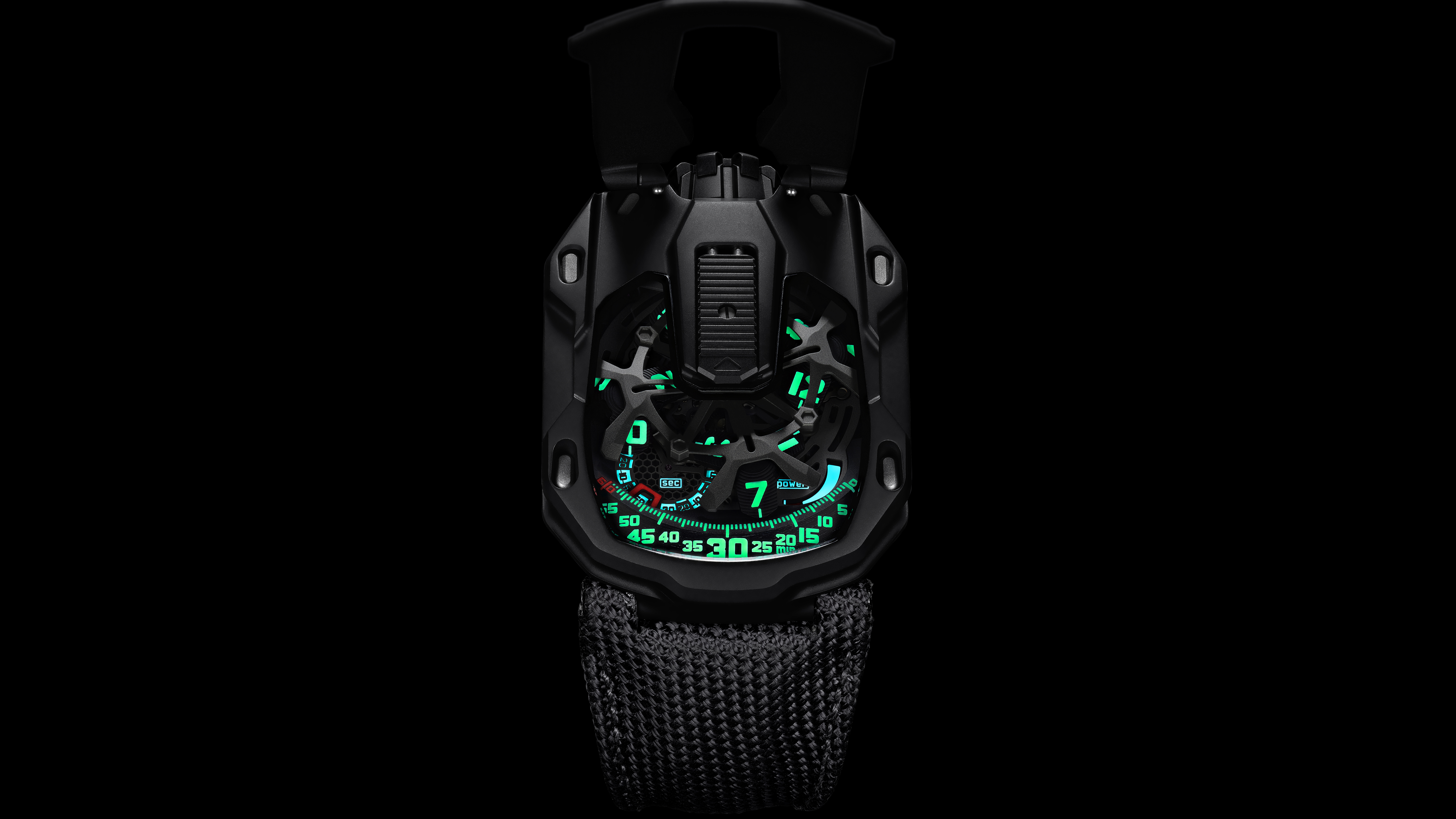 The first watchmaker to experiment with this idea was Abraham Louis Breguet. His Sympathique clocks and watches consisted of a pocket watch that could be docked to a high precision pendulum clock, which would automatically set the watch and wind it. The Urwerk AMC takes this idea and brings it into the 21st century: the master clock is no longer a high precision pendulum clock with a constant force escapement, but an atomic clock. Let’s take a closer look at how the inspiration of one of watchmaking’s greatest geniuses has been reinterpreted by one of modern watchmaking’ s most innovative companies.