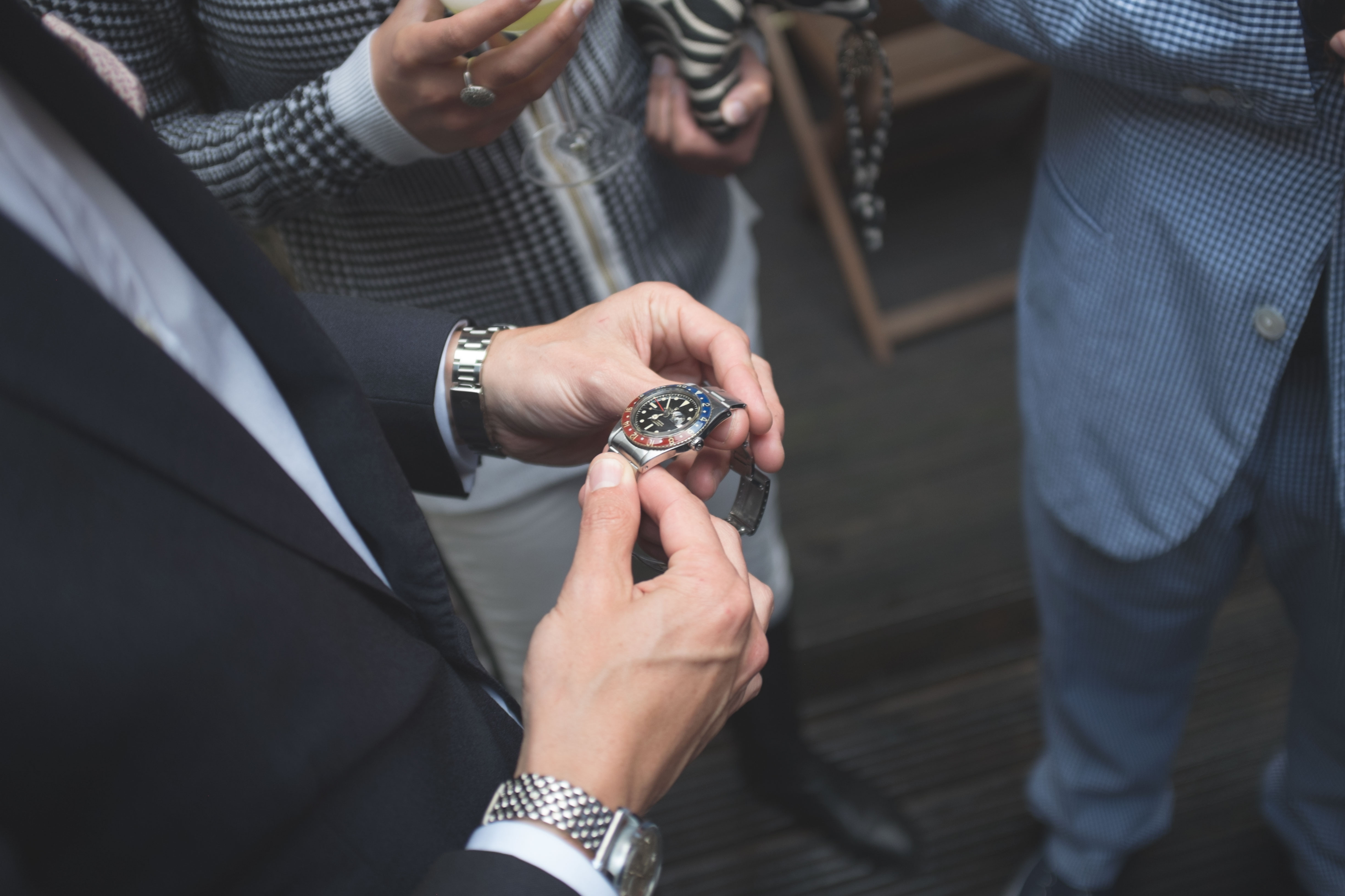 While most guests wore their collector's items on the wrist, a few also carried some impressive gear in their pockets. Hidden, but not for long, was this petite Longines pocket watch. And it was a treat to see one of limited edition Drake's for HODINKEE Genta pocket squares, back in the UK where it was made.