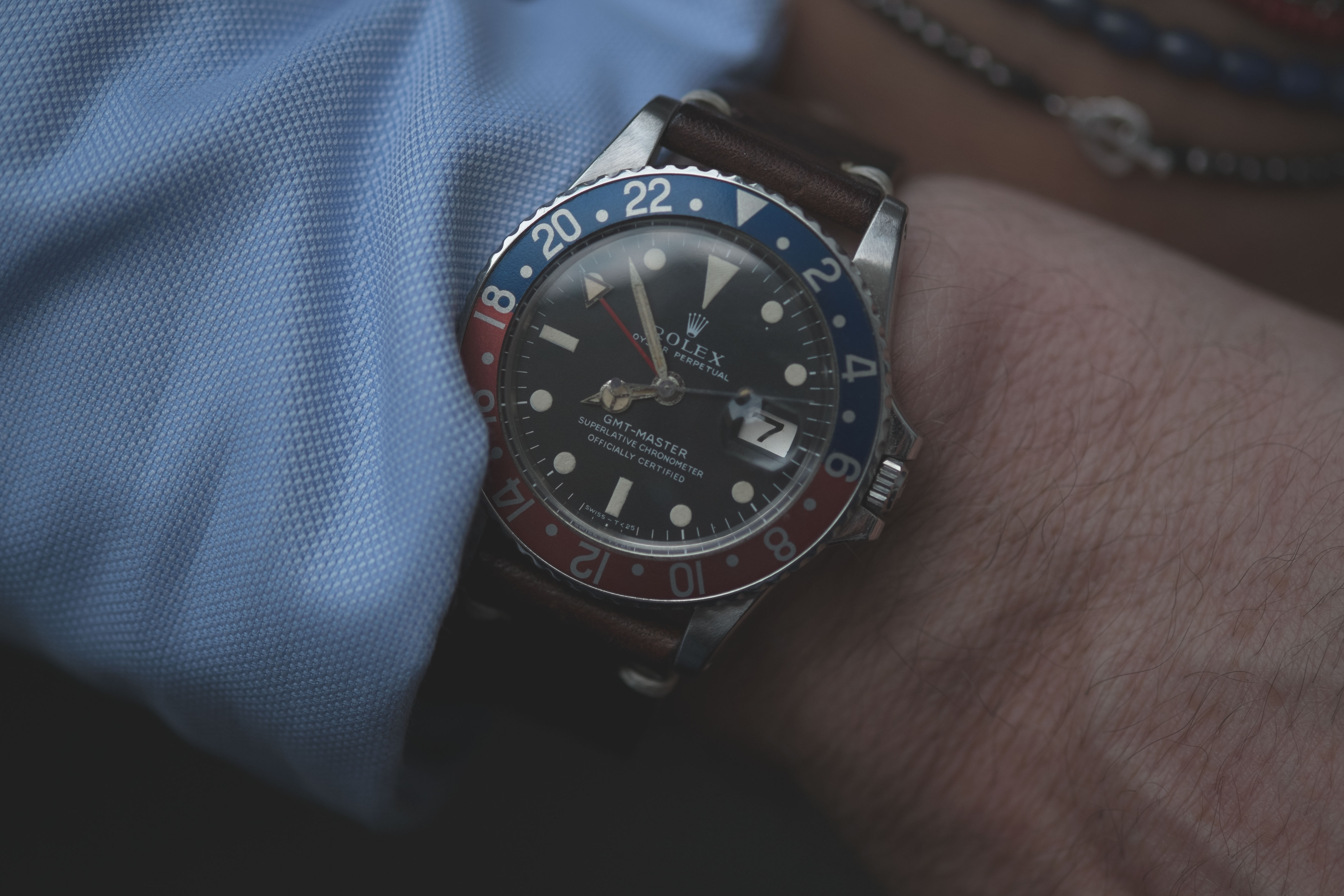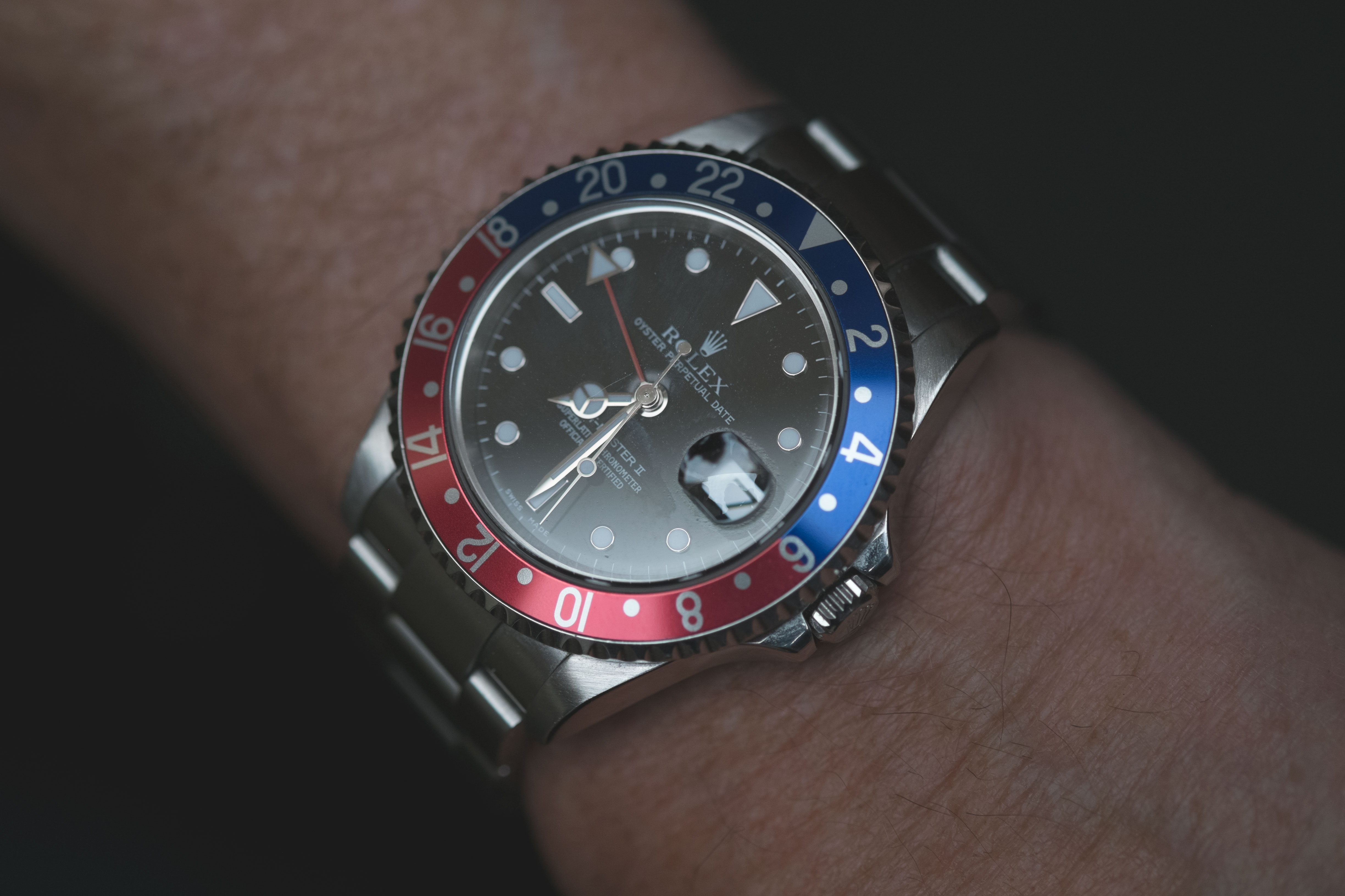Rolex GMT Reference 6542 With Bakelite Bezel. Oh, and a familiar pocket square in the background.